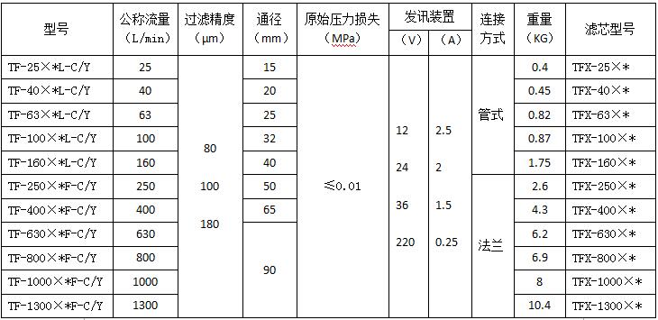 TF(新型結(jié)構(gòu)代替LXZ系列)箱外自封式吸油過濾器產(chǎn)品技術(shù)參數(shù):